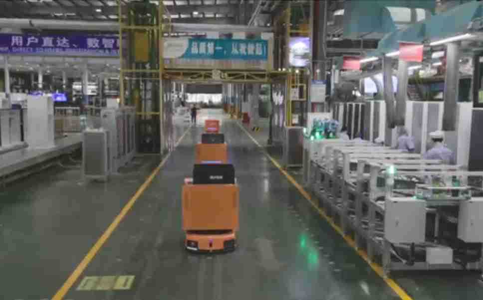 为车载冰箱物流配送打造的智能解决方案,,包含产中物流通过潜伏举升AMR搬运至线边,,,产后成品物流智能仓储,,流程包含产中物流智能齐套入库,,线边安灯叫料AMR智能配送至线边,,,,成品入库、、、出库,,,通过无人堆高车机器人,,,,智能仓储管理替代人工作业管理,,,,实现更高存储、、更高效率、、更具柔性化的解决方案。。