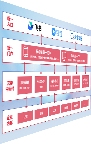 对协作平台提供支持服务,,,,支持企业应用与协作平台对接,,,,包含组织同步、、、、消息集成、、、待办集成等。。。支持目前主流的协作平台:钉钉、、、、企微和飞书。。。